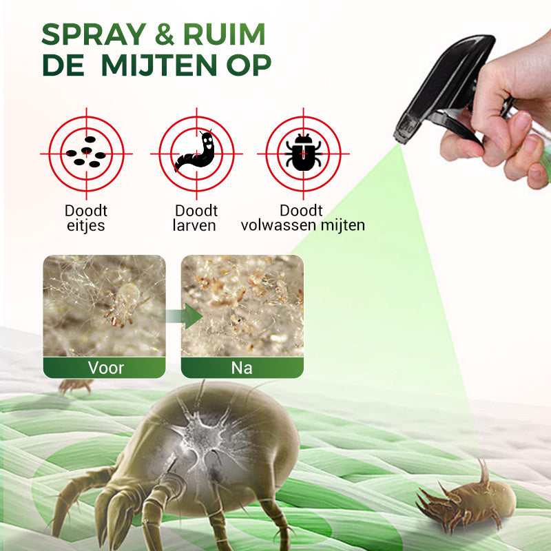 🦠💥 Krachtige Mijtenverwijderaar Spray – 100% Veilig & Effectief tegen Huisstofmijten! 🌿