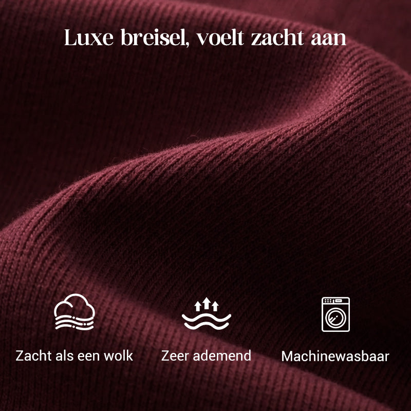 🔥HOT SALE🔥Dames top met gedrapeerde hals en ruches, lange mouwen, gebreid👚